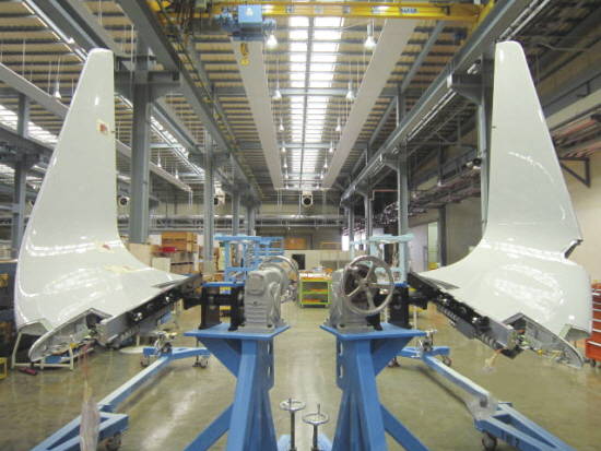 부산 테크센터에서 제작 중인 A320 샤크렛의 모습. ⓒ 대한항공