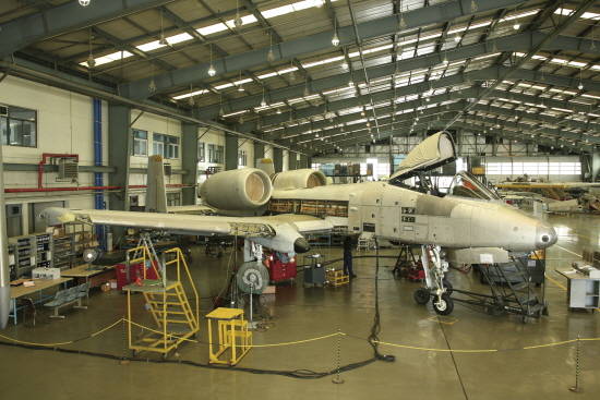 부산 테크센터에서 창정비 중인 미군 A-10 전투기. ⓒ 대한항공