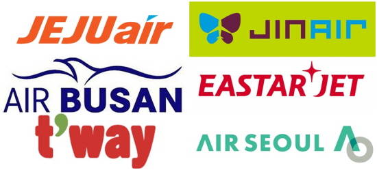 제주항공을 비롯해 △진에어 △에어부산 △이스타항공 △티웨이항공 △에어서울 6개 LCC의 CI. ⓒ 각사