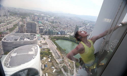 [프라임경제] '암벽여제' 김자인씨가 123층 555m 롯데월드타워를 맨손으로 올랐다.