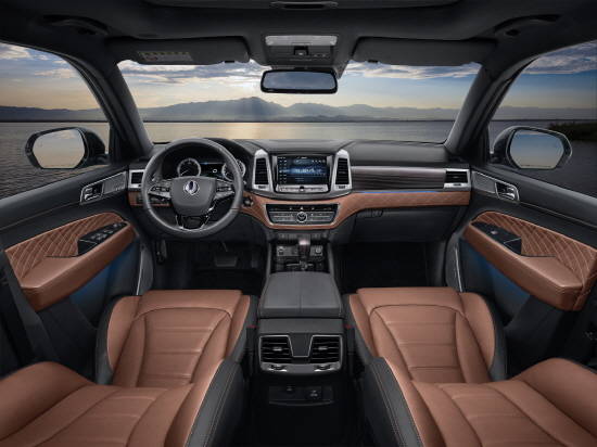 최적의 설계를 자랑하는 G4 렉스턴 실내는 동급 최대 2열 다리공간을 비롯해 넉넉한 실내공간을 확보했으며, 동급에서 유일하게 2열 탑승객을 태우고도 골프백 4개를 실을 수 있도록 제작됐다.ⓒ 쌍용자동차