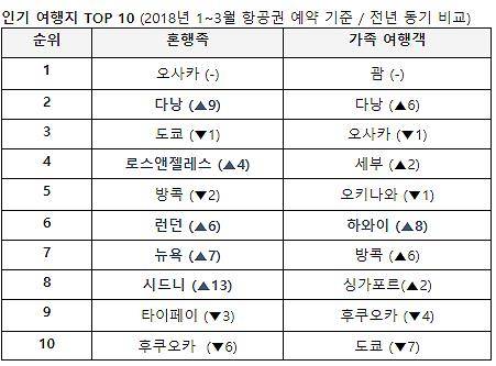 여행 지형도 근거리에서 장거리로 확대되고 있다. 하와이와 뉴욕, 런던과 로마 등 장거리 여행지가 TOP 30위 여행지에 새로 이름을 올렸다. 여행 구성원에 따라 선호하는 여행지에 차이를 보였다. 2018년 1~3월 하와이행 가족 여행객 항공권 예약은 올해 대비 5배 상승하며 6위를 차지했다.