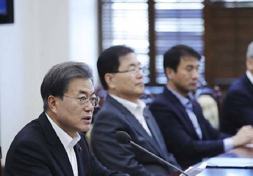 위안부 이면 합의 이슈로 문재인 대통령의 콘트롤 타워 역할이 강조되고 있다. 사진은 회의 중인 문 대통령과 청와대 고위급 관계자들. ⓒ 청와대