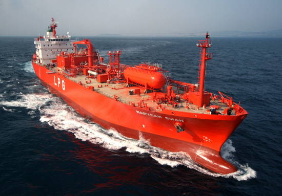 현대중공업은 지난 24일 쿠웨이트 국영 선사인 KOTC사와 8만4000㎥급 초대형 LPG운반선 3척, 2억2000만달러 규모의 선박 건조계약을 체결했다. 사진은 현대중공업이 건조한 초대형 LPG운반선. ⓒ 현대중공업