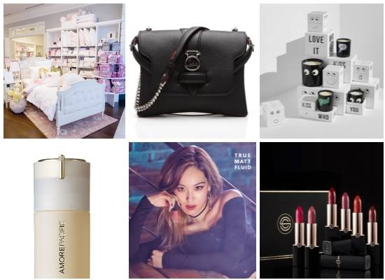 (왼쪽부터 시계방향) 현대리바트 '포터리반 키즈 분당점' 오픈, 신세계인터내셔날 '루비루 핸드백·안야 스멜즈' 출시, 현대홈쇼핑 DPC 루즈 퓨르 벨벳 립스틱, 에이블씨엔씨 어퓨 트루 매트 플루이드, 아모레퍼시픽 타임 레스폰스 컬렉션. ⓒ 각사