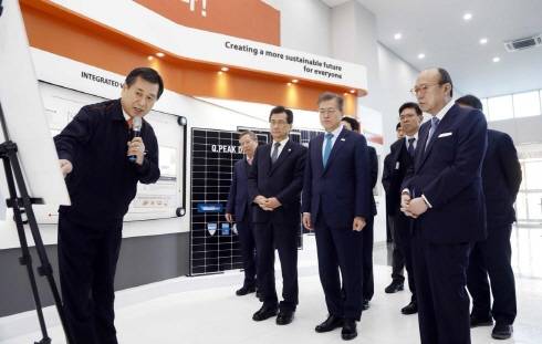 문 대통령이 10대 그룹에 속하는 기업의 국내 생산현장을 방문한 것은 취임 후 처음이다. 지난해 12월 중국 국빈방문 시 현대차 충칭공장을 찾은 바 있지만 당시에는 해외 산업 진출 현장이라는 점에 방점이 찍혀 있었다고 볼 수 있다. 특히 한화큐셀은 단일 태양광 셀 생산시설로는 세계 최대 규모라는 점에서 '굴뚝산업 탈피'라는 의미도 크다.