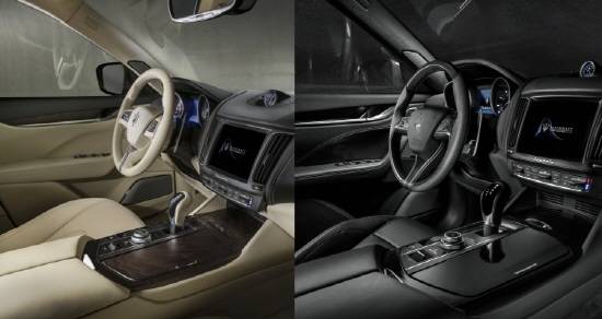SUV 특성에 맞는 혁신적인 솔루션이 강조된 마세라티 르반떼 인테리어는 동급 최고 럭셔리함을 자랑한다. 사진 왼쪽부터 그란루소 트림과 그란스포트 트림. ⓒ FMK