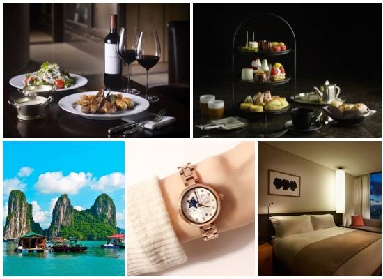 (왼쪽부터 시계방향) 서울신라호텔 '스프링 고메·더 애프터눈티 매지컬 윈터, 신라스테이 공룡대전 패키지, 이랜드월드 오에스티 '물고기자리' 시계, 인터파크투어 시니어 요금제. ⓒ 각 사