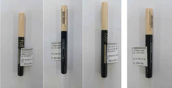 또한 △에뛰드 하우스의 에뛰드하우스에이씨클린업마일드컨실러·에뛰드하우스드로잉아이브라우듀오3호그레이브라운 △CJ올리브네트웍스의 엑시티엠스타일옴므이지스틱컨실러 △블랭크티비의 블랙몬스터옴블랙이레이징펜 △에스제이씨글로벌의 스케다맨즈스팟컨실러 △아이피리어스의 스킨푸드앵두도톰립라이너5호로즈앵두 △(주)난다의 쓰리씨이 슬림 아이브로우 펜슬#CHESTNUT BROWN △메이크힐의 네이키드슬림브로우펜슬그라베이지브라운BR0203·네이키드슬림브로우펜슬누디옐로우블론드YL0801 등도 포함됐다.