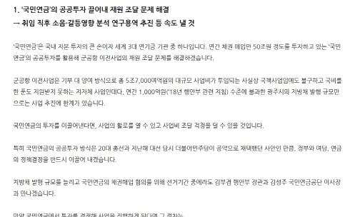 하지만 이는 국민연금의 공공투자나 대여 등 시스템을 제대로 이해하지 못한 나이브한 아이디어 아니냐는 우려가 나온다. 관련 부처 수장들을 깡그리 무시한 것이라는 비판도 성립 가능하다.