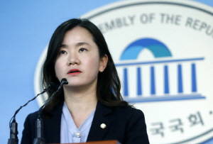 신보라 자한당 원내대변인이 우원식 민주당 원내대표의 발언을 규탄하고 있다. ⓒ 뉴스1