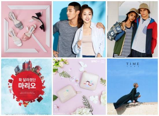 (왼쪽부터 시계방향) LF 라움에디션 '마이슈즈룸' 시즌4, BYC 2018년형 보디드라이, 유니클로·JW 앤더슨 콜라보레이션, 한섬 TIME 1993, 이랜드 스파오 '스파오 X 빨강머리앤' 라인, 마리오아울렛 대규모 리뉴얼. ⓒ 각 사