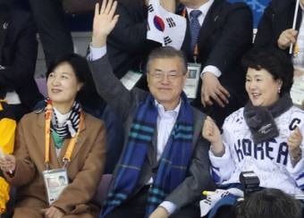 왼쪽부터 추미애 민주당 대표, 문재인 대통령, 김정숙 여사. ⓒ 뉴스1