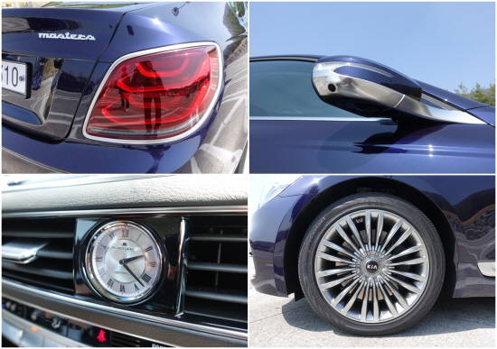 THE K9은 트림명을 차별화된 자형으로 후측에 부착한 것을 비롯해 램프 주변에 메탈릭 베젤을 적용했다. 아울러 스위스 명품 시계 브랜드와 협업해 고급감을 강조한 아날로그 시계를 탑재했다. = 노병우 기자