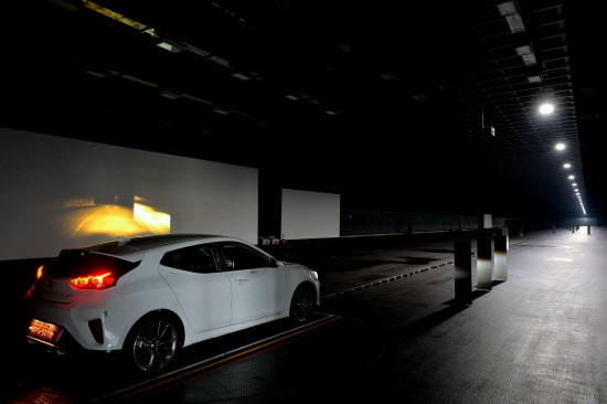 길이 250m로 세계 최대 규모를 자랑하는 현대모비스 터널시험로에서 시험차량이 얼마나 멀리 있는 장애물까지 식별가능한지 테스트 해보고 있다. ⓒ 현대모비스