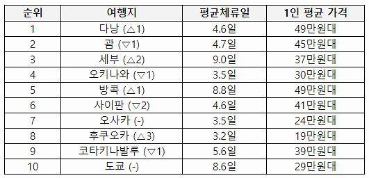 다만, 올해는 인기 순위가 바뀌었다. 가족여행객 부동의 1위 여름휴가지였던 괌이 다낭에게 자리를 넘겨줬고, 보라카이 폐쇄로 인해 세부 항공권 예약 건수가 205% 증가, 인기 순위 3위를 기록했다.
