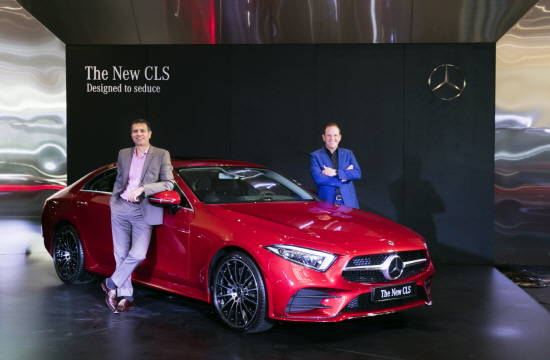 메르세데스-벤츠 코리아 디미트리스 실라키스 대표이사 사장과 세일즈&마케팅 마틴 슐즈 부사장이 더 뉴 CLS와 기념촬영을 하고 있는 모습. ⓒ 메르세데스-벤츠 코리아