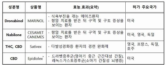 해외 대마성분 의약품 허가품목 현황.(2018년 7월18일 기준) ⓒ 식약처