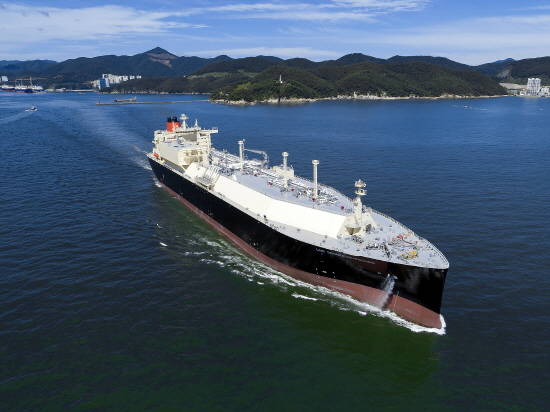 대우조선해양이 건조 인도한 저압엔진용 완전재액화시스템 적용 LNG운반선 운항 모습. ⓒ 대우조선해양