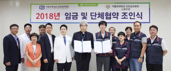 가톨릭대 인천성모병원은 최근 노·사 관계자가 참석한 가운데 2018년 임금 및 단체협약을 체결했다. ⓒ 가톨릭대 인천성모병원