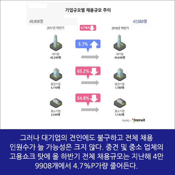대기업 활발, 작은 업체는 채용 규모 축소 조짐