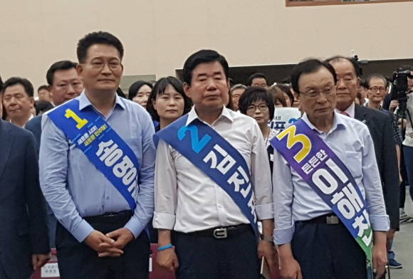 25일 민주당 전당대회에서 격돌하는 (좌로부터) 송영길 후보와 김진표 후보, 이해찬 후보. ⓒ 프라임경제