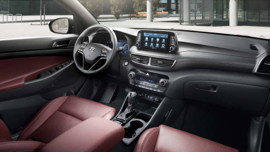 투싼 페이스리프트 실내는 운전자 중심 수평적 레이아웃으로 보다 넓은 공간을 확보했으며, 특히 주요 부위에 가죽을 이용해 고급스런 도심형 SUV 이미지를 연출했다. ⓒ 현대자동차