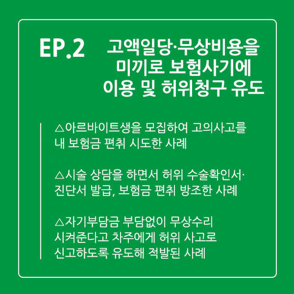 허위작성·고의사고 유발‥ 불법행위요구 응할 시 보험사기 연루