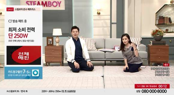 CJ ENM 오쇼핑부문의 10월 2주차 생활·계절가전 상품 취급고가 전주 대비 대폭 증가했다. 사진은 지난 10일에 방송한 '스팀보이 온수매트리스' 매진 장면. ⓒ CJ ENM