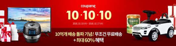 쿠팡, 로켓배송 10억개 돌파 기념 '10-10-10 이벤트' 진행