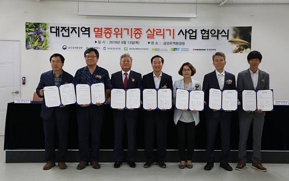 한국타이어와 함께 멸종위기종을 살리기 위한 사업을 하는데 우리나라 환경부 금강유역환경청, 대전광역시, 대전충남생태보전시민모임, 대전환경운동연합, 순천향대학교, 천리포수목원이 함께 한대요.