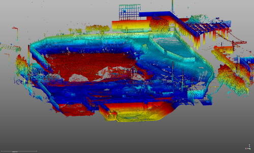 청량리4구역 현장의 토공량 확인을 위한 레이저 스캐닝 영상 ⓒ 롯데건설