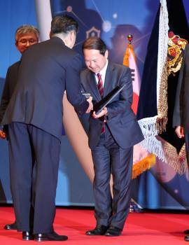 16일 서울 삼성동 코엑스에서 열린 '제42회 국가생산성대회'에서 김연배 이랜드리테일 대표가 정승일 산업자원통상부 차관으로부터 대통령표창을 받고 있는 모습. ⓒ 이랜드리테일