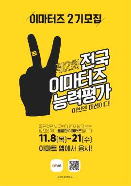 1차 선발 과정인 온라인 미션은 이마트 상품을 하나 선정해 자신만의 시각으로 리뷰해 제출하는 형식으로, 오는 21일까지 이마트 앱을 통해 진행된다. 이후 2차 오프라인 실기미션은 12월 8일 이마트 본사에서 치뤄진다.