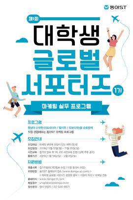 [프라임경제] 동아에스티(70900·대표이사 회장 엄대식)는 오는 12일부터 마케팅 실무 프로그램 '대학생 글로벌 서포터즈 1기(Dong-A Global Supporters)' 참가자를 모집한다고 9일 밝혔다.
