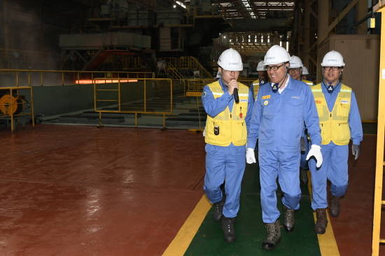 최정우 포스코 회장은 광양제철소 4열연공장을 방문해 조업현황과 공장 전반을 살펴본 후 직원들을 격려했다. ⓒ 포스코