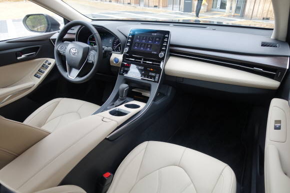 올 뉴 아발론 하이브리드는 인테리어 디자인에도 기능적인 아름다움이 일관되게 표현됐다. = 노병우 기자