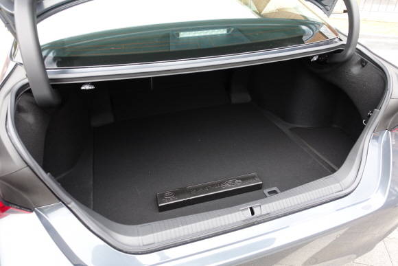 올 뉴 아발론 하이브리드는 배터리 위치가 리어시트 하단으로 이동함으로써 이전 세대인 가솔린 모델과 동일한 트렁크 공간을 확보했다. = 노병우 기자