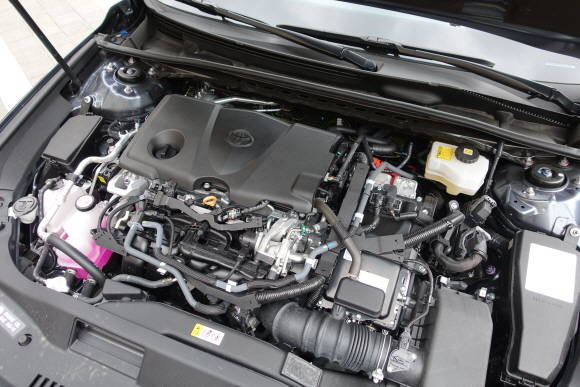 올 뉴 아발론 하이브리드는 다이내믹 포스 엔진, 기존 대비 20% 효율을 높인 파워컨트롤 유닛과 트랜스미션이 결합해 218마력의 높은 시스템 총 출력을 낸다. = 노병우 기자