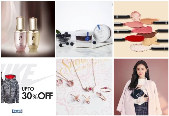 (왼쪽부터 시계방향) LG생활건강 후 천기단 화현 메이크업 2종, 이니스프리 블루베리 리밸런싱 프레시 시즈널 마스크, 에뛰드하우스 플레이 101 펜슬, 로엠 크리스털 홀리데이 컬렉션, 클루 백설공주 컬렉션, 나이키 키즈 다운 점퍼 컬렉션. ⓒ 각 사