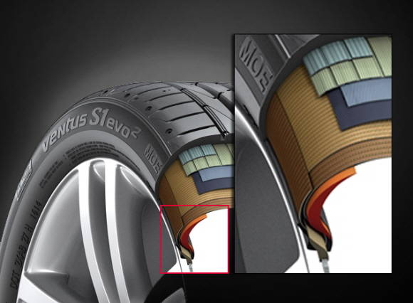 한국타이어의 3세대 런플랫 타이어 구조도. ⓒ 한국타이어