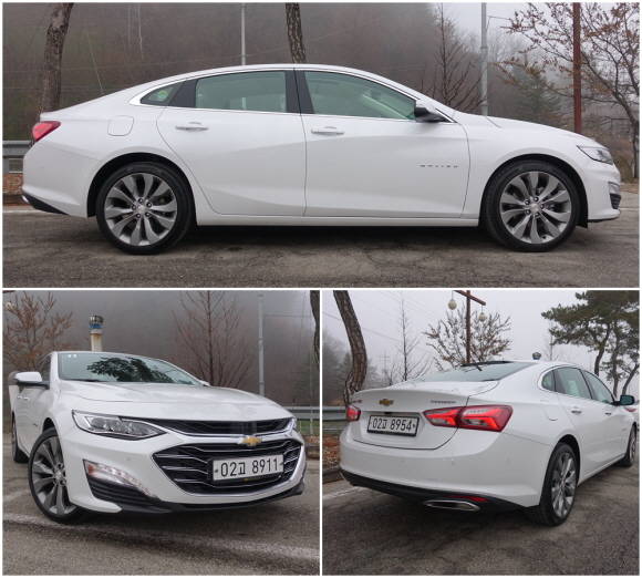 일단, 더 뉴 말리부(전장 4935㎜·전고 1465㎜·전폭 1855㎜·윤거 2830㎜)는 이전 모델 대비 확실하게 역동적으로 변했다.