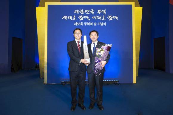 '제55회 무역의 날' 기념식에서 이우진 GC녹십자 해외사업본부장(오른쪽)이 '2억불 수출의 탑'을 수상한 후 기념사진을 찍고 있다. ⓒ GC