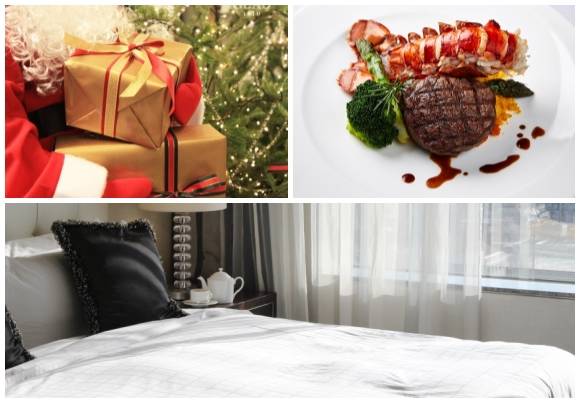 (왼쪽부터 시계방향) 메종드글래드 굿나잇 산타 패키지, 오크우드 Delicious Christmas 다이닝 프로모션·be fresh 패키지. ⓒ 각 사