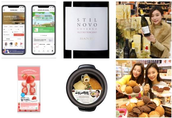 (왼쪽부터 시계방향) 롯데홈쇼핑 '국내여행 전문관' 모바일 전용 전문관으로 확대, 롯데쇼핑 유럽 3개국 와인 3종, 홈플러스 벨콜레 모스카토 다스티 와인, 롯데마트 디저트 3종, 세븐일레븐 따끈한어묵우동·듬뿍듬뿍 딸기 샌드. ⓒ 각 사