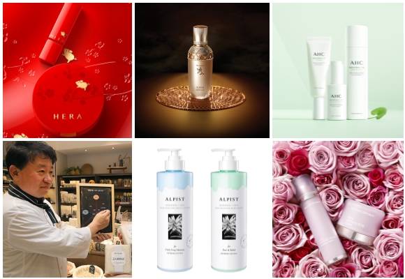 (왼쪽부터 시계방향) 헤라 2019 골든 피그 컬렉션, LG생활건강 수 한방 론칭, AHC 미니멀 10 민감 피부 진정 라인, 네이처리퍼블릭 하이 인테스 로즈 라인, 알피스트 에딜바이스 바디워시·로션 2종, 현대백화점 쌀 판매 전문매장. ⓒ 각 사