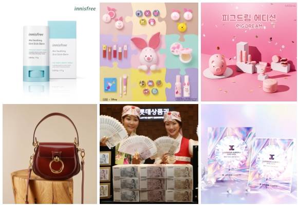 (왼쪽부터 시계방향) 이니스프리 아토 수딩 오인트 스틱 밤, 에뛰드하우스 해피 위드 피글렛 컬렉션, 미샤 피그드림 에디션, 제이준코스메틱 루미너스 오로라 펄 마스크, 롯데백화점 상품권 패키지, 끌로에 2019 봄·여름 시즌 테스 백. ⓒ 각 사