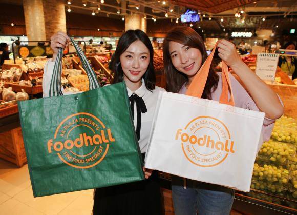 AK플라자 분당점 식품관 '분당의 부엌' 슈퍼존에서 직원들이 새로운 AK플라자 장바구니를 선보이고 있어요. ⓒ AK플라자