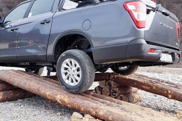 쌍용차가 준비한 오프로드 코스는 언덕경사로를 시작으로 △통나무·범피 △침목·요철코스 △사면경사로 △언더범피코스 △업범피코스 △모글코스로 구성됐다. 이곳에서 칸은 자신의 사륜구동 시스템의 진가를 여가 없이 발휘했다.