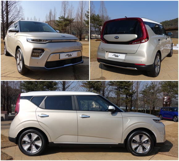 쏘울 부스터 EV는 기본 모델의 단단한 이미지를 유지하면서 전·후면을 정제된 면으로 깔끔하게 처리해 깨끗하고 미래 지향적인 디자인을 선보였다. = 노병우 기자